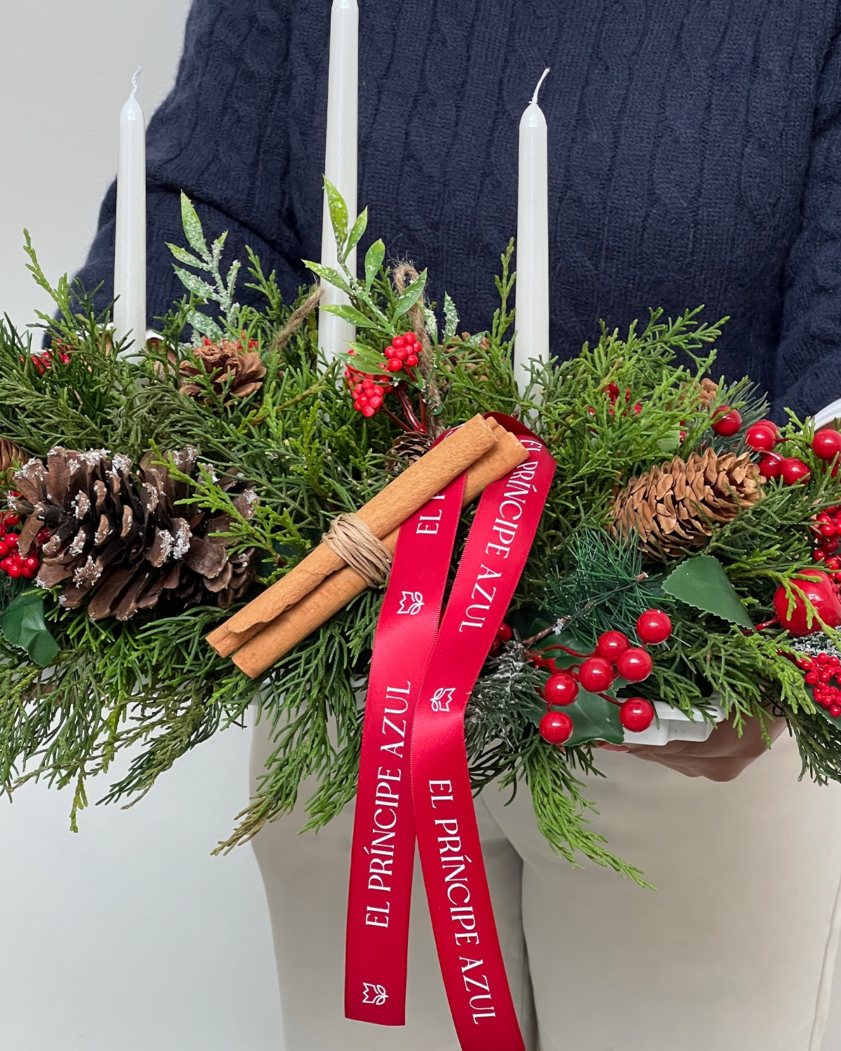 Harmony Centerpiece es un centro de mesa para fiestas que combina pino natural, detalles rojos y acentos navideños, para llenar su hogar de elegancia, tradición y armonía en esta temporada tan especial. Creado artesanalmente por El Príncipe Azul, es una joya decorativa que transforma cualquier cena en un recuerdo inolvidable.
