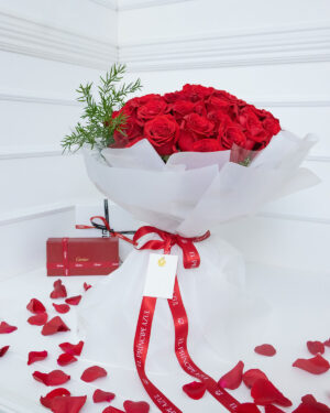 Cada rosa del Héritage d’Amour Bouquet cuenta una historia de amor y elegancia, con rosas rojas impecables envueltas en finos papeles blancos, este diseño minimalista ofrece la opción de incluir una mini Polaroid, añadiendo un toque único y personal. Perfecto para quienes quieren expresar sentimientos duraderos con sofisticación y cuidado en cada detalle.