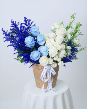 LILAGLOW combina rosas lilas premium con una selección de flores mixtas en la misma gama. La composición, pensada con detalle, logra armonía entre calma y fuerza, para dejar un recuerdo imborrable a quien las recibe.