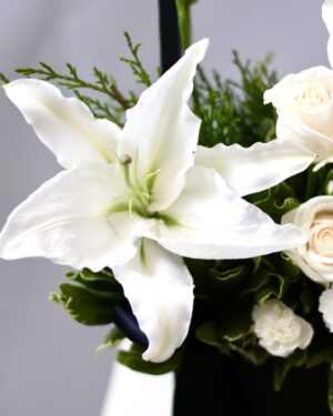 LUZON es un suspiro de luz convertido en flores. Este arreglo floral para celebrar toca el alma. Sus pétalos blancos reflejan gratitud, nuevos comienzos y la pureza de los sentimientos más sinceros, mientras la caja celeste envuelve la emoción como un secreto elegante.
