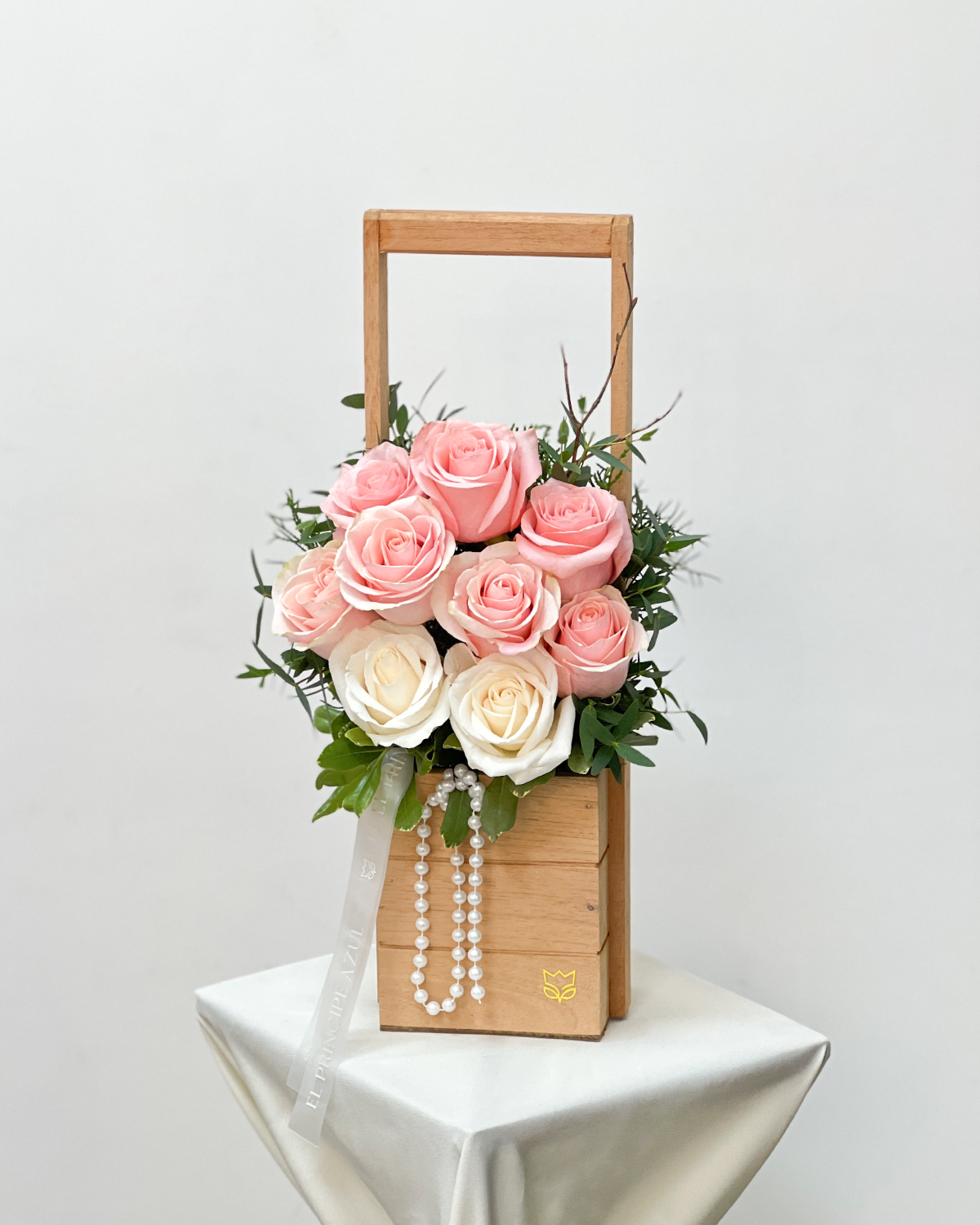 ROSALUNE es una caricia convertida en flores, un arreglo de flores para mamá con perlas, rosas y gratitud que se entrega sin palabras. Un tributo eterno, lleno de amor.